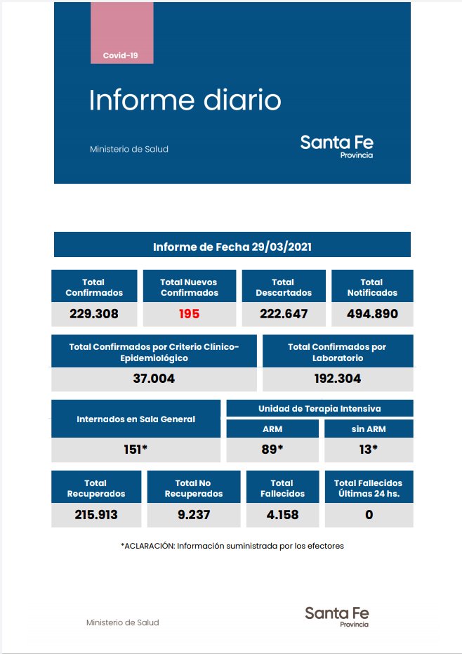 Informe diario del Ministerio de Salud de la provincia de Santa Fe